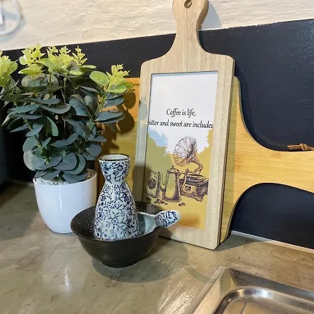 Este apartamento dispone de una pequeña cocina con un hervidor eléctrico, nevera y utensilios de cocina.